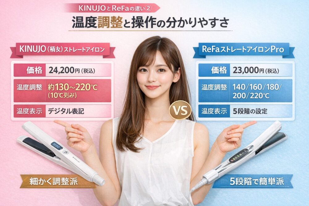 KINUJOとReFaストレートアイロンの違い(2):温度調整と操作の分かりやすさ