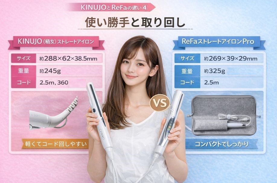 KINUJOとReFaストレートアイロンの違い(4):使い勝手と取り回し